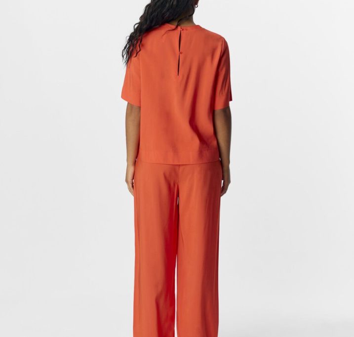 DESCRIPTION: Loose top – Part of a matching set – Stand away collar – Keyhole back button fastening – Short sleeves – Loose fit