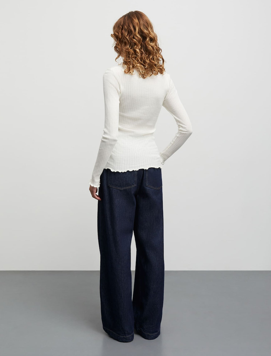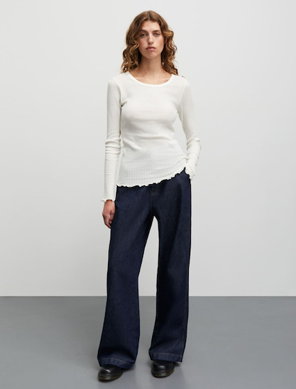 DESCRIPTION: These denim pants are made of a lightweight cotton. Wide legs and mid waist.