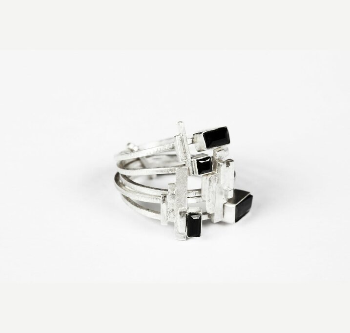 This ring is handmade in 925 Sterling Silver, finished with onyx, a semi-precious stone. The jewel contains 5 ring attached together.