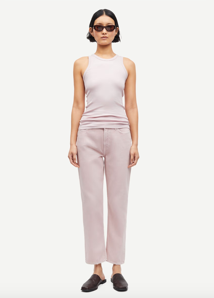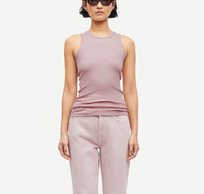 DESCRIPTION: Rib-knitted tank top with a slim fit. Main material made from an elastic organic cotton-blend. This product contains organic cotton grown without the use of GMOs or hazardous chemicals.