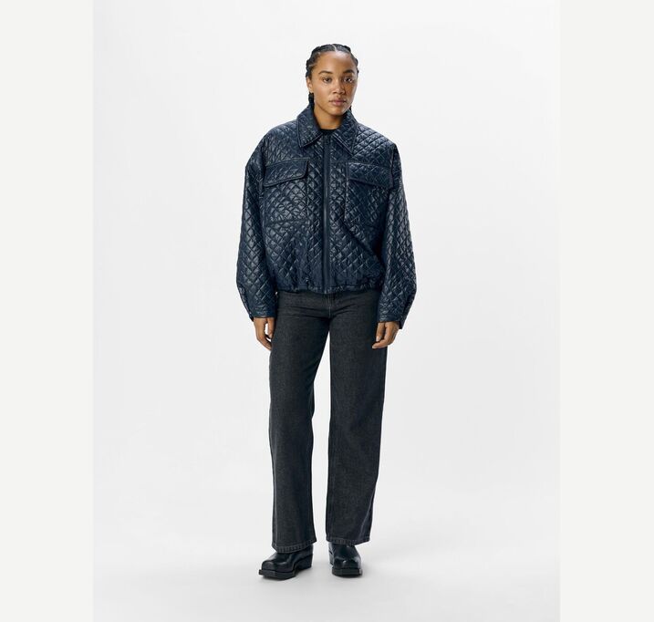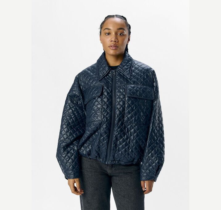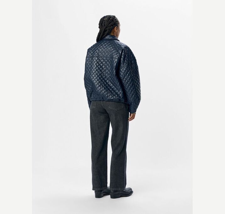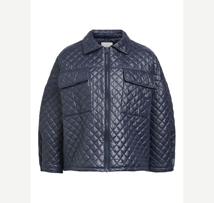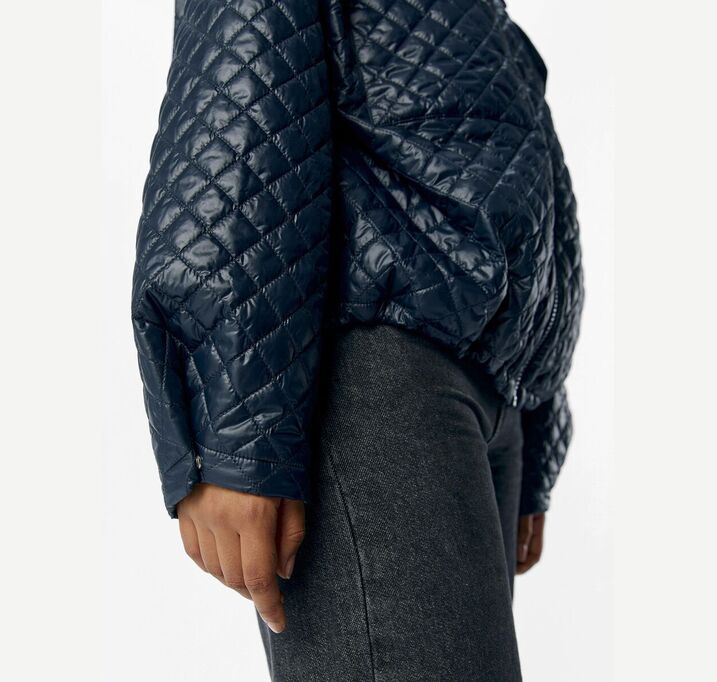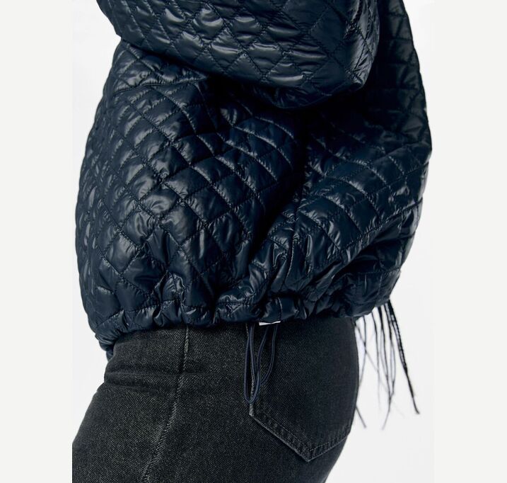 DESCRIPTION: Oversized quilted jacket – Spread collar – Long voluminous sleeves – Buttoned cuffs – Chest pockets – Zip-up front – Drawstring hem.