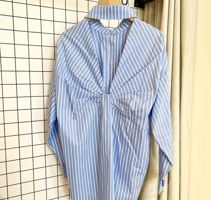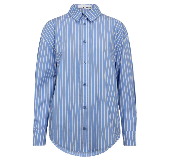 DESCRIPTION: Let your style speak with the Bow Candy Twist Stripe Shirt from women’s clothing brand Haute L’Amitié. This blouse combines classic blue and white stripes with a striking playful detail: a feminine bow in candy twist style that gives that little bit extra. Made from high-quality, airy cotton, this shirt feels as comfortable as it looks.