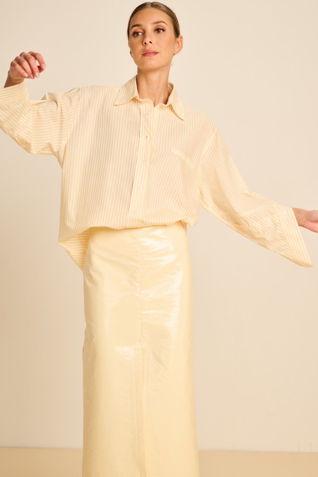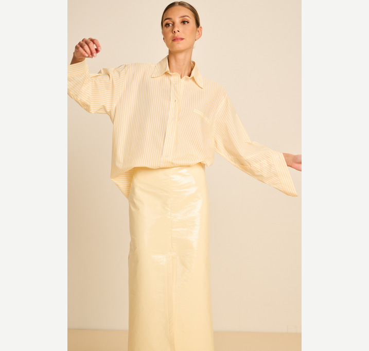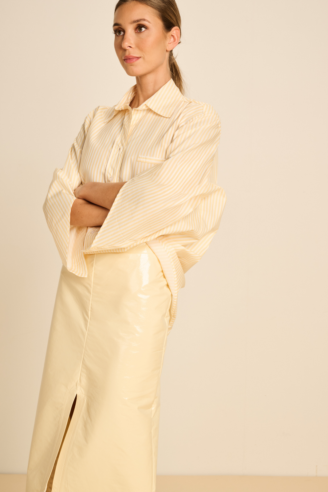 DESCRIPTION: The Imala skirt, our Vernice midi style, is an ideal choice for the start of the season. Pair it with the Alice blouse for a polished look or with our cozy knitwear for effortless elegance.