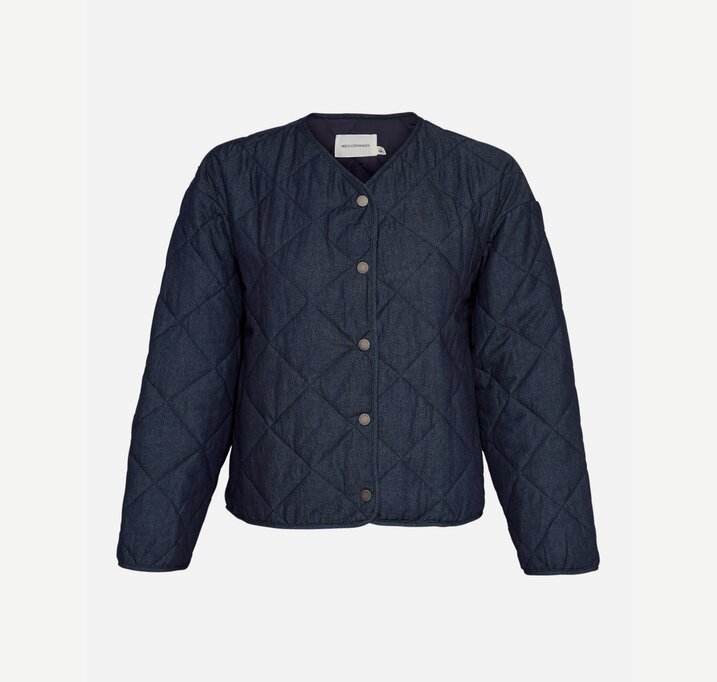 Looking for a cute light jacket? Our newest addition to our outerwear collection is here and it’s a lightweight cotton jacket, in a quilted denim look. It features side pockets, cool front buttons and a slight V-neckline. This can replace a blazer in an indoor outfit or be worn as a spring jacket.