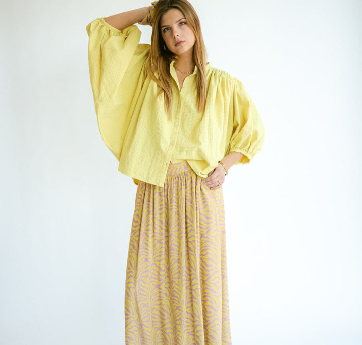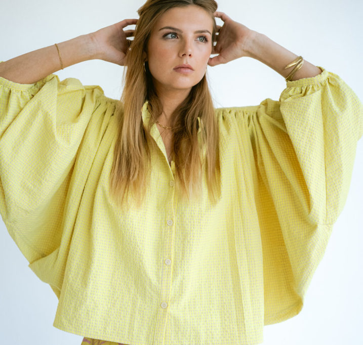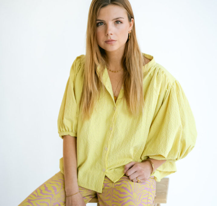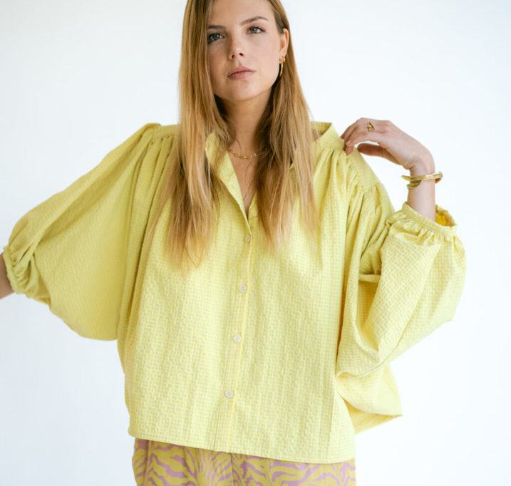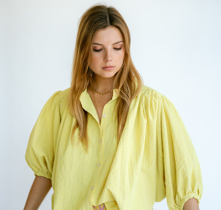 DESCRIPTION: This bestseller is also part of our collection this summer. Combine this yellow checked blouse with the Sam Pants for a full look or combine it with the Sam pants in Palm Yellow Pink.