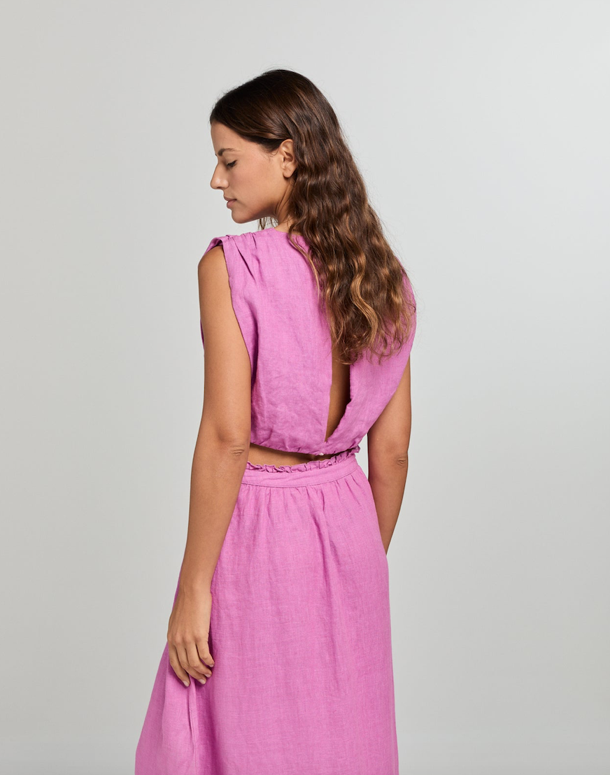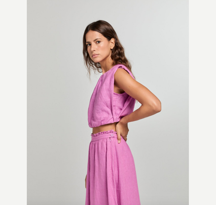 DESCRIPTION: The Romeo linen cropped top is a perfect mix of elegance and ease. Designed with a relaxed fit and crafted from breathable linen, it’s ideal for warm days. Pair it with the Manon skirt for an effortlessly chic look.