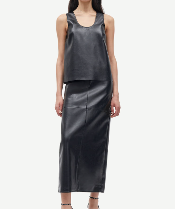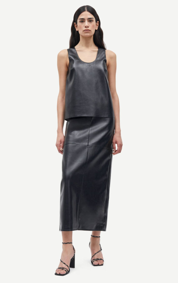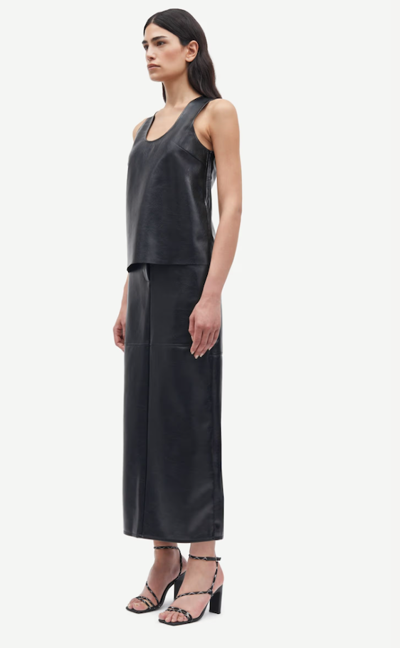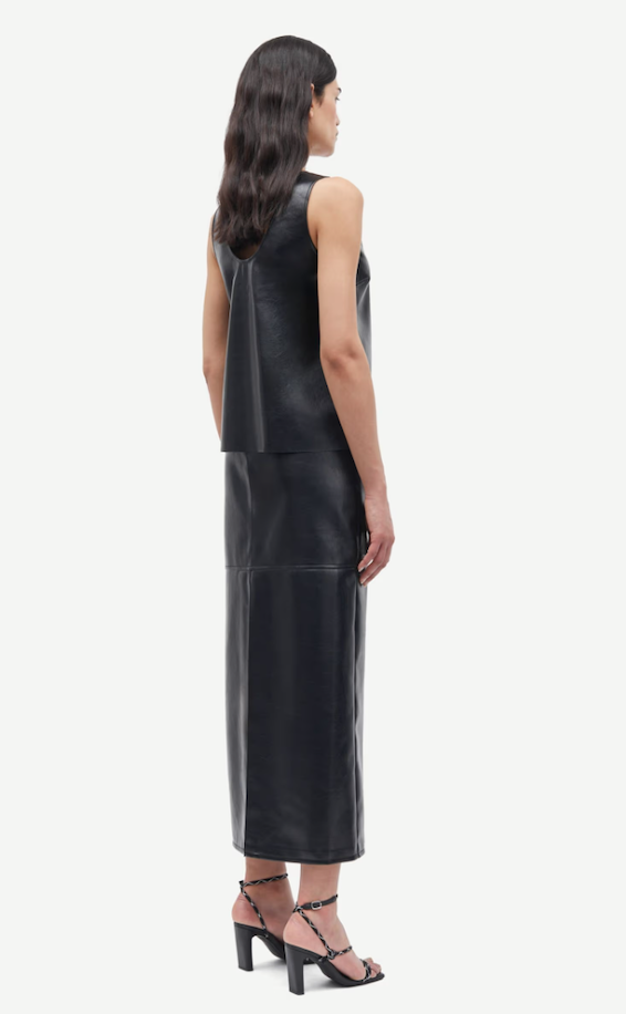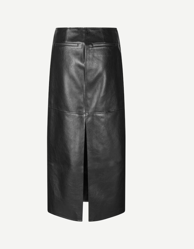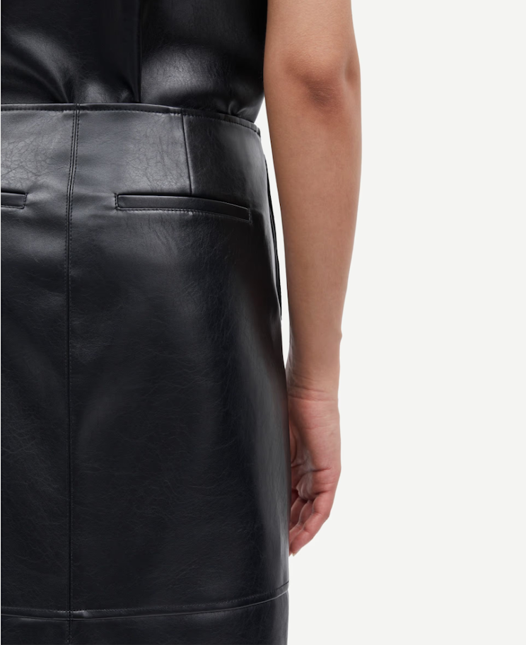 Maxi skirt with a regular fit. Hidden hook and zipper closure at the fly. Low waist. Side slit pockets on the front and welt pockets on the back. Fully lined. Main material made with recycled leather. This product is GRS certified. Each stage of the supply chain has met strict social, environmental, and chemical requirements.