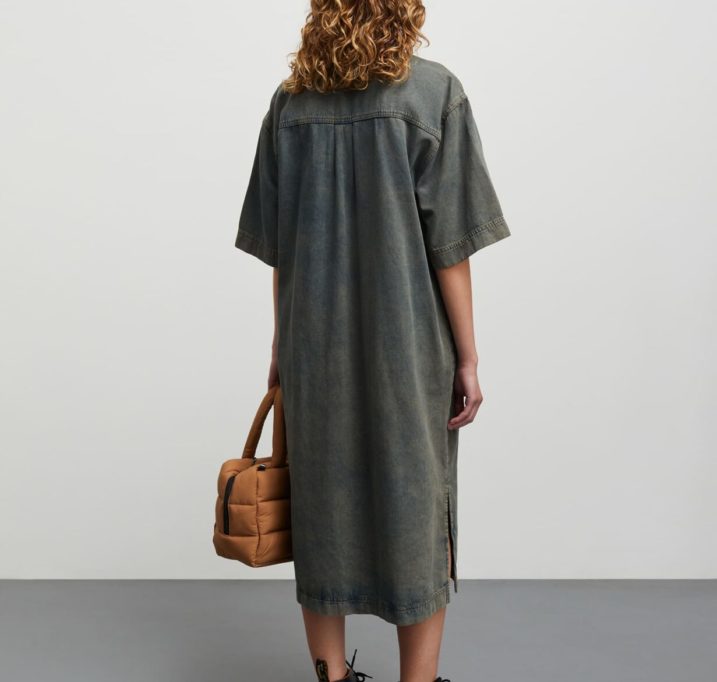 DESCRIPTION: Midi dress in a light weight soft Denim.